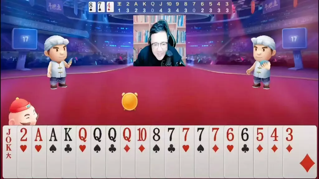 这是一则斗地主相关的福利活动宣传,美女主持全员集合,在直播场景中带来趣味内容,为这场桌游棋牌活动增添看点,吸引观众参与。
