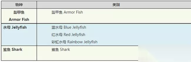 3、水生宠物有:盔甲鱼,水母,鲨鱼
