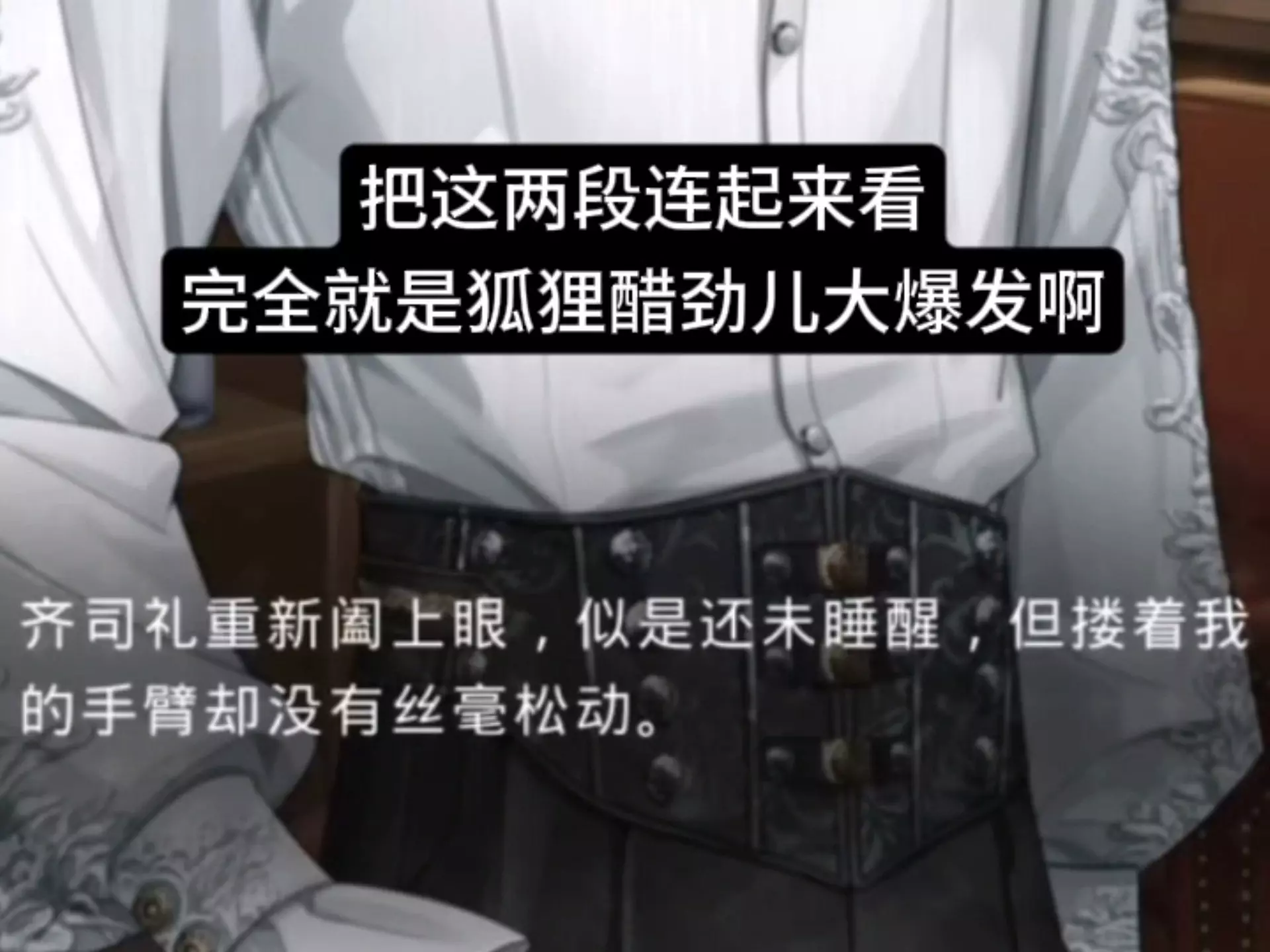 这是游戏《光与夜之恋》的剧情片段,齐司礼不动声色按下他人的手,之后夏鸣星提出要牵“大小姐”的手同行,齐司礼吐槽此举像小学生春游,认为该专心走自己的路。
