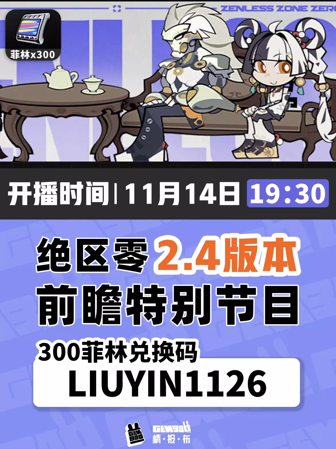 绝区零2.4版本活动总结 [向右R]绝区零十连前瞻码 300菲林兑换码:LIUYIN1126 签到获得十连和十连邦布券 [向右R]2.4卡池信息: 上半卡池:琉音(物理击破) 上半卡池复刻:雨果(冰强攻) 下半卡池:般岳(火命破) 下半卡池复刻:艾莲(冰强攻) #绝区零 #绝区零攻略 #绝区零创作者激励计划 #绝区零攻略杂谈 #绝区零二创 #绝区零版本前瞻 #绝区零兑换码 #绝区零前瞻直播 #将临未抵的深渊
