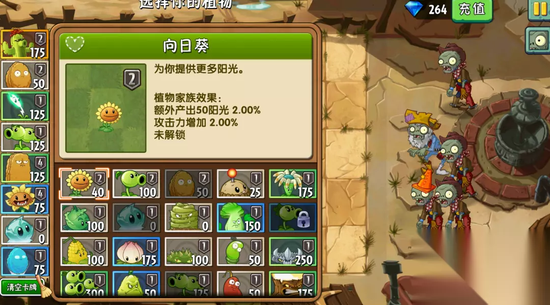 通关条件:这一关要求我们不得花费多于1750的阳光,不能让僵尸踩坏花坛。这一关我们作为护花使者,需要保护花坛,同时阳光花费的数量也有限制,有一定的难度。