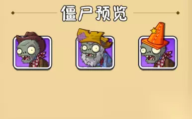 首先我们来了解一下这个关卡的僵尸有哪些,这个关卡僵尸一共有到3种,他们分别是:淘金僵尸、牛仔僵尸、路障牛仔僵尸。虽然僵尸类型不多,但是数量多速度快,还是有一定的难度。 植物选择和布防