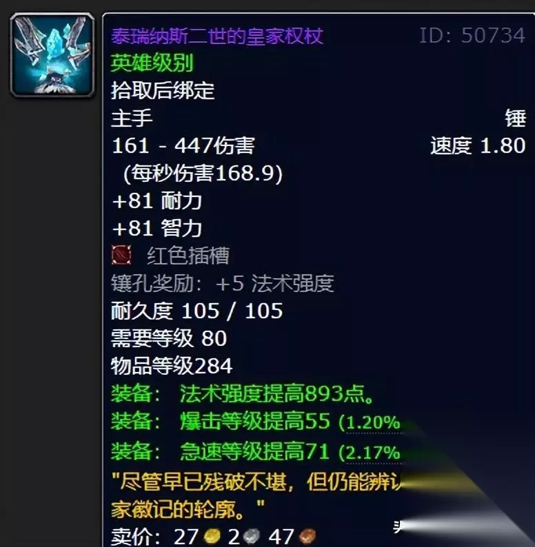 不过橙锤的特效更适合于单刷,如果要论刷团的话,橙锤肯定不是第一选择。这就不得不提到25人冰冠堡垒BOSS腐面掉落的单手锤:创伤。