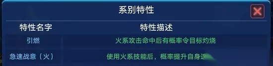 4.分类:星觉·超进化神宠 5.特性: ⑴系别特性: ①加伤:勐兽猎手(火) ②加速:急速战意(火) ⑵能力特性: ①焚烧意志 ②燃烧的意志