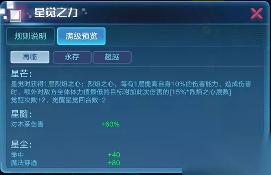 6.装备:输出推荐鬼冥刹影 7.装备刷法:一般刷满速,即四件装备的装备词条都刷速度 8.技能书: ①蓝色:暴击增加、暴伤增加、魔攻提升 ②紫色:克制大师、晴空天气、魔攻觉醒 ③橙色:大魔术师、爆伤战士、晴空超动力 9.星灵: ⑴输出 ①持久选金轮星灵,大招爆发选龙骨星灵 ②星魂刷魔法穿透 ③星华刷三个暴击率 10.星觉: ⑴再临:适合竞技场