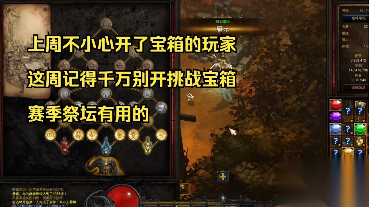 暗黑3祭坛解锁材料有哪些 强化后的武器(打卡之后):选一把打过卡的武器即可,因为要献祭掉,所以可以铁匠做一把辣鸡远古武器。 无瑕的皇家红宝石:用于特定封印的解锁,可通过完成悬赏任务等方式获得宝石,然后在珠宝匠处升级得到。皇家华戒:来自悬赏任务,第一幕的悬赏任务开箱子掉落概率较高,用于特定封印的解锁。拉马兰迪的礼物:大秘境自然掉落,与石化尖啸掉落池一致,常需要通过大量刷大秘境来获取。石化尖啸:只能通过大秘境掉落,本赛季坩埚圣化的装备分解后也有一定几率会出,是解锁某些高级封印的关键材料。远古机械指环:普通的机械指环可通过重铸有几率得到远古的,本赛季还可以直接用坩埚圣化后献祭,同时还需要5种悬赏材料各50个。赎罪低语:需要用石化尖啸打到一定层数获得,例如要打到126-127层,才能得到125级的赎罪低语,用于解锁特定封印。