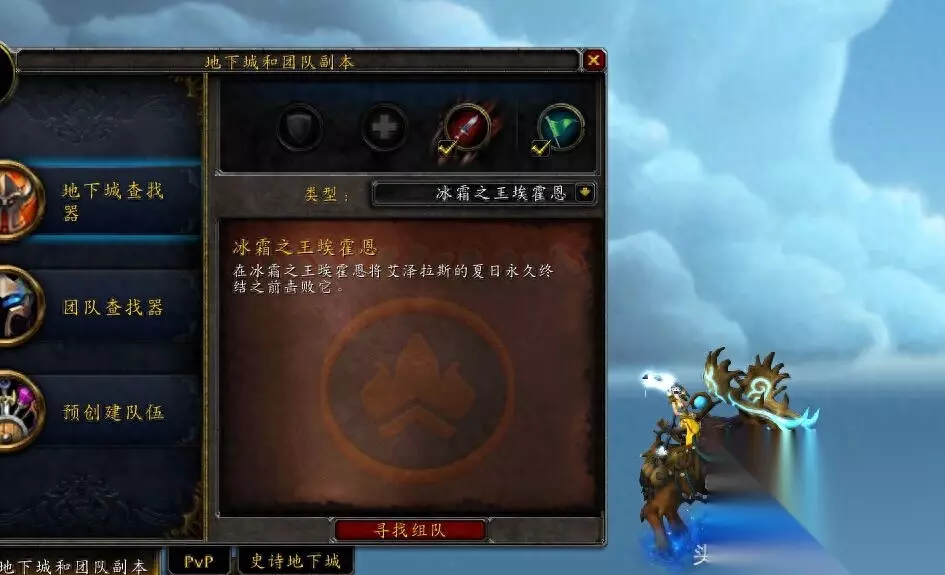 又到了一年一度的魔兽世界“仲夏节”,北京时间2017年6月21日起始,2017年7月5日截止,这个期间,所有满级(110级)的玩家都可以每天击杀一次这个五人地下城啦! 首先打开魔兽世界“I”字键位,找到魔兽世界地下城查找器边上的箭头,点击之后就能看到这个“冰霜之王埃霍恩”地下城啦!