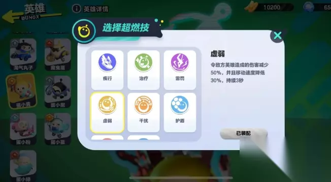 蛋小黄比较好用的超燃技可选择虚弱,它一是能够降低一定的移动速度,这样能在滚动的时候,和敌对玩家形成一定的速度差,有速度差之后,就可以不断撞出僵直的效果。二是它自带50%的减伤,在和敌方玩家进行对撞的时候,自身会拥有一定的坦度。对于那些出装比较极端,只堆输出不堆肉的敌人来说,能够形成优势。至于在超燃竞技场中,蛋小黄的流派核心可选滚动专精,它能够降低释放技能之后的CD。其他的搭配卡片则可以选择小巨蛋和滚动延长。蛋小黄出装的时候,首先可以选择的是降温斗篷,它能够增加蛋小黄一定的血量,并进行技能减伤。