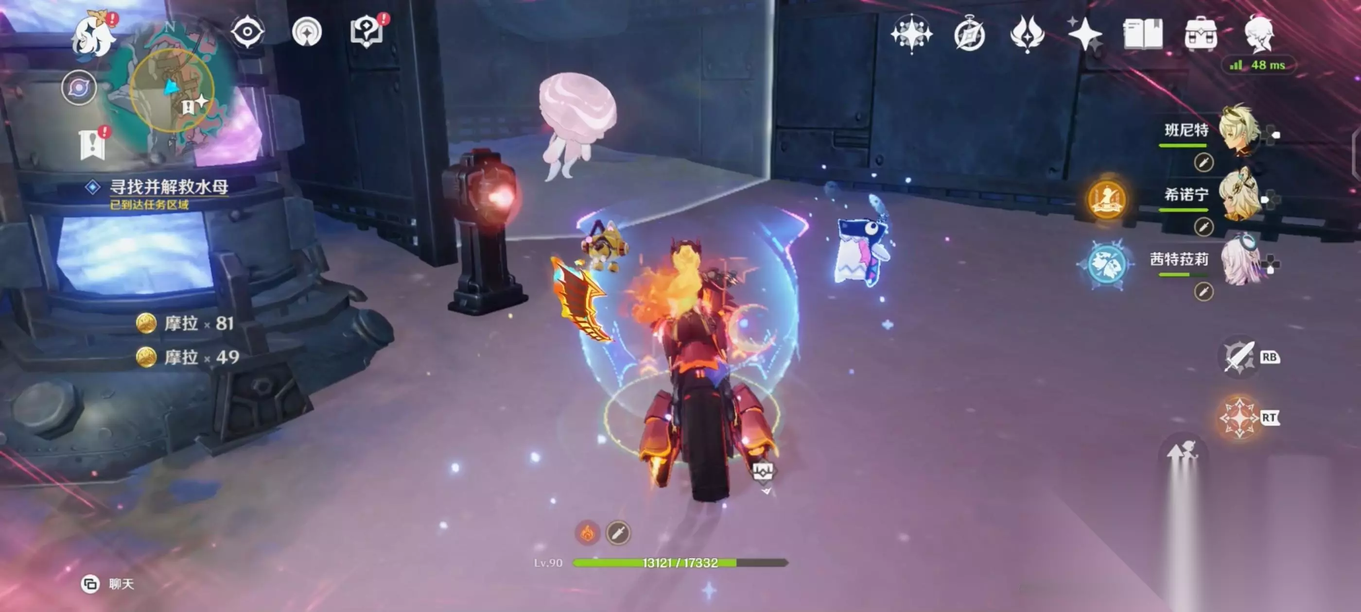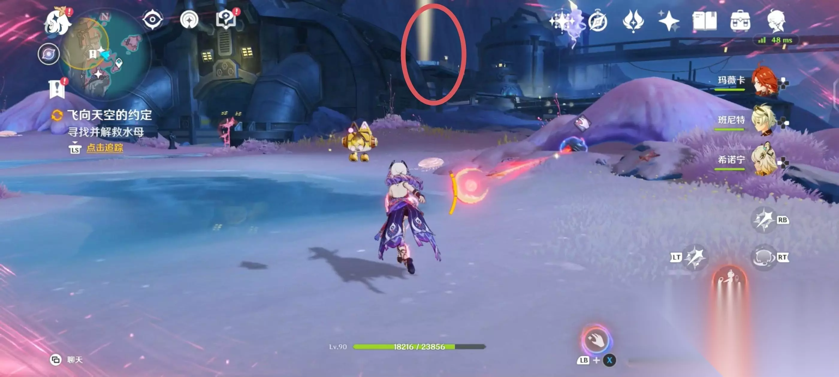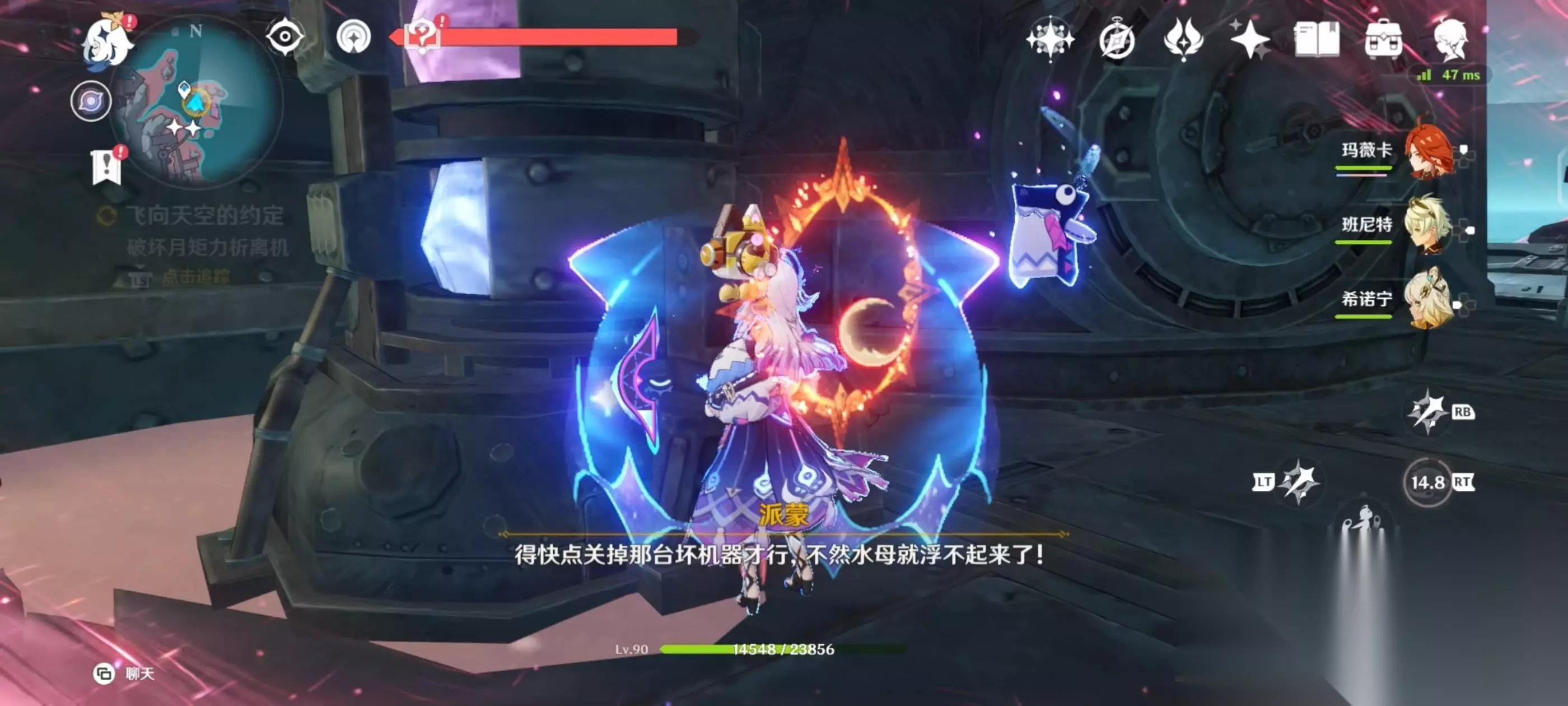 将水母解救后,利用不远处的月矩力来到空中,将机关破坏后进入对话;