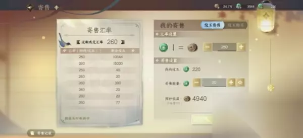 寻梦测试纹玉:铜钱汇率为1:260,刚开服的时候比例是1:50 这次测试为充值返利测试,所以这个比例大家看看就好了,跟正式服会有很大出入。 交易行可以交易装备,天赏道具,打造材料,金内功和生活商品; 好的特技和内功都离不开大量基础材料去拼脸,例如天外陨铁和金内功宝箱,当然欧皇除外。这次测试除了BUG阶段,这些材料都是上架秒没的。这里是提升战力的主战场。 天赏道具物价参考: