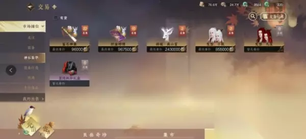 120绑定纹玉抽一次,保底60次出一个 10个绝技需要升阶5次,每天限购100次(与抽群侠共享上限) 升阶拉满需要60个绝技X保底60抽=3600次=36天满抽=¥43200 抽卡系统保底拉满共计=¥68400+57天 虽然抽卡不像官方说的只需要花费1万多,但是提升的功力确实不多,每进阶一次金群侠或者绝技,大概能提升十几点的战力,而且因为只能携带一个技能,所以这部分战力可以理解成虚战力。不建议一般玩家追求 五、其他方面(内置交易) 1.交易行购买
