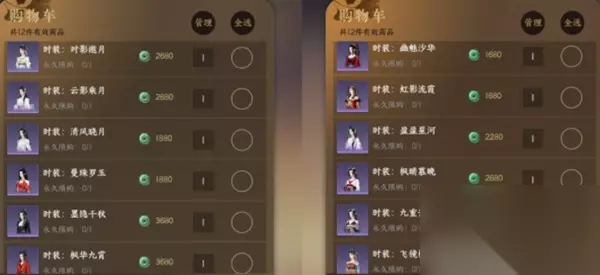 月卡+高级进阶战令=总计¥193 这个是推荐玩家购买的,月卡用于抽群侠技能和升阶。战令给的金色内功、活力丹、百炼装备等都是前期急需的。 二、时装道具(外观类) 1.商城时装 12套 ¥3016