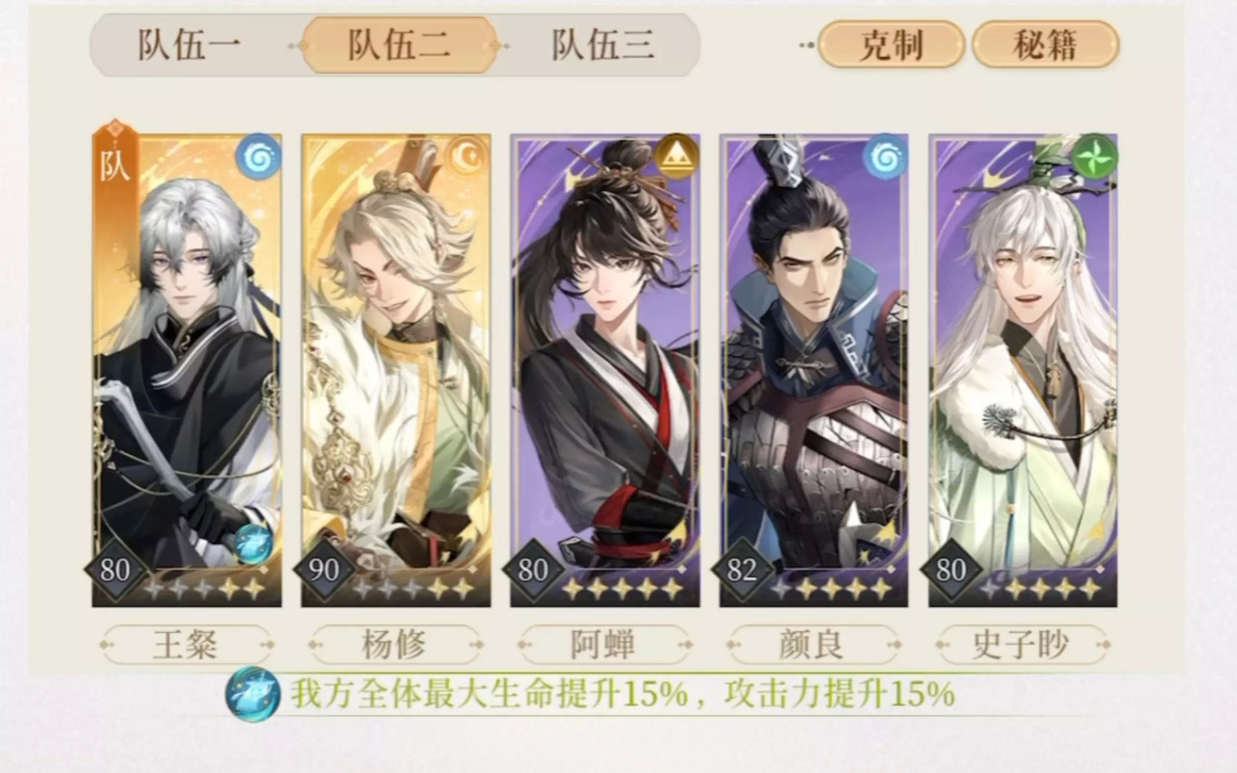 杨修阿蝉可换高练度c,仅杨修90+15,颜良82级其他均80未突破