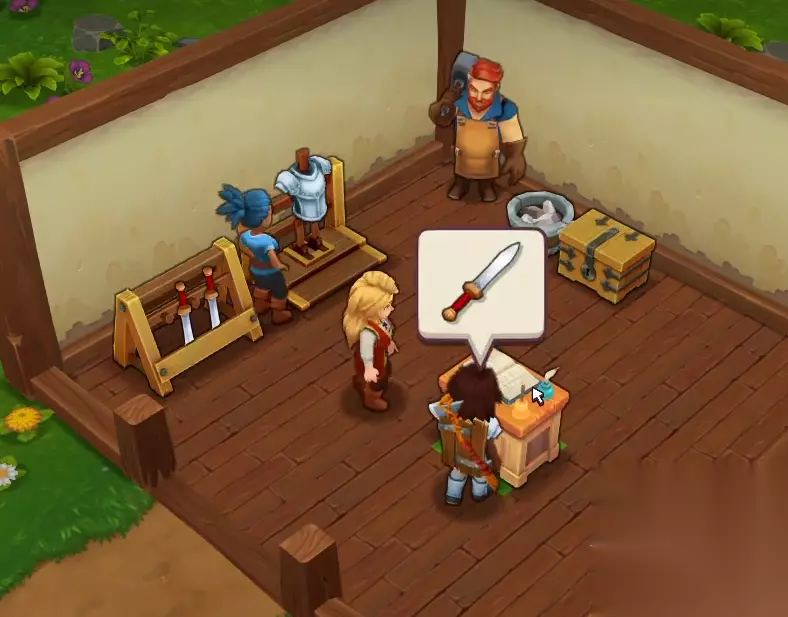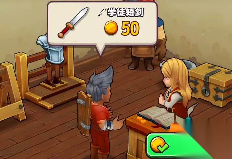 这款游戏以模拟经营为主,我们所扮演的是一家商店的店主,一开始玩家们需要先选择自己的性别,在选择完毕后需要给自己起一个名字,然后便可以正式开启游戏了。咱们一开始的店铺非常的陈旧,玩家们需要先对店铺进行打扫才行。打扫的话点击需要打扫的设备几次即可。在打扫完毕后我们会整理出来一个物品货架。紧接着欧文长老会给我们一张短剑的设计图。前期咱们的游戏主要就是收集材料,制作物品,然后放到货架上惊醒出售来赚取金币。 在制作完毕短剑后,玩家们还需要制作一个铠甲,接着需要把武器和铠甲都放到货架上进行出售。不久之后咱们便会迎来我们的第一个顾客。在交易完成后第一阶段的教学便会结束。接下来我们需要制作短剑或者护胸甲来进行出售。这个阶段我们的任务就是不断的出售装备,让自己的店铺等级尽快得到提升。在升到2级之后玩家们可以雇佣的店员就会增加。咱们的新店员会给我们带来全新的图纸。