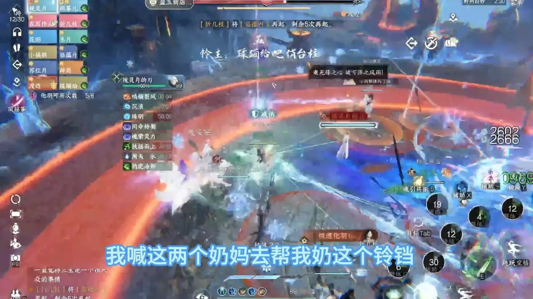 这是《逆水寒》副本机制讲解系列的第6期,展示了玩家团队对战BOSS无痕的副本战斗画面,呈现了战斗中的伤害统计、技能使用、团队协作等内容,讲解该BOSS的副本战斗机制。
