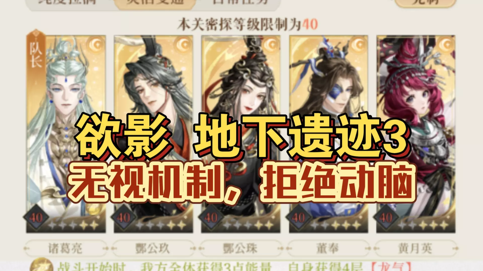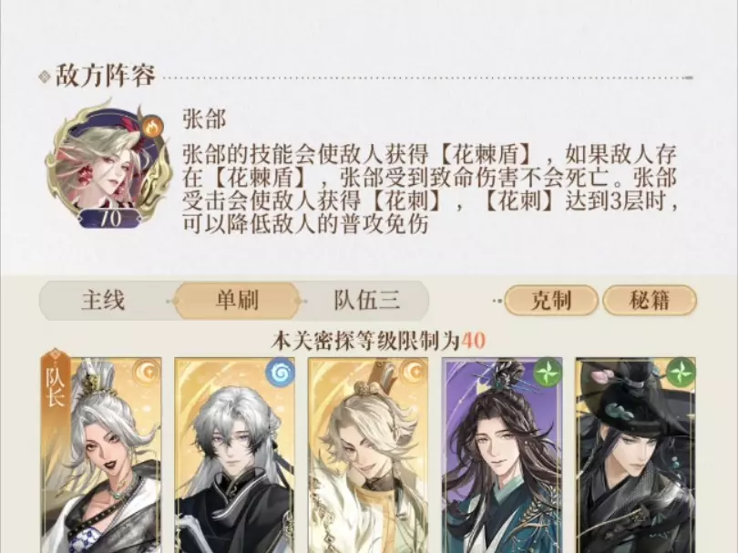 登80+13,其他90+15,练度和命盘在视频最后面。 1、3、5号位可以换成其他的攻击密探。 不需要很高的练度,弄懂机制就可以过关。 当密探周围有红框且身上没…
