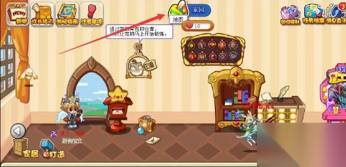 洛克王国幽系徽章怎么获得 获得步骤: 1、洛克王国幽系徽章需要打败露西亚获得,只需要进入游戏后,打开世界地图。
