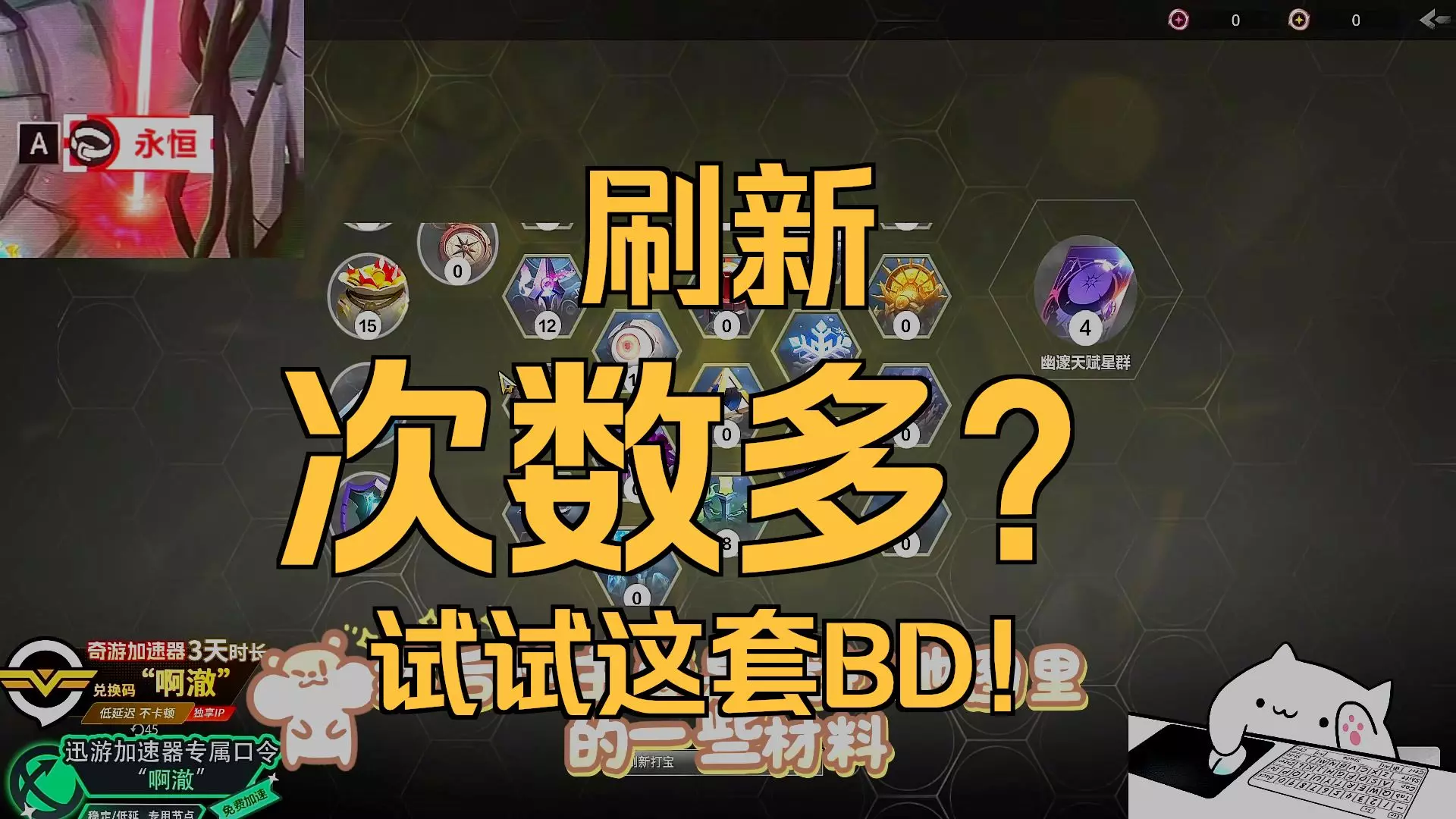 其实就模拟下掉净化切割和事半功倍以及两个技能搞了个淘汰头,没办法,没了净化切割必须全力走斩杀,后续再想想怎么搞,目前体验下来是感觉没削弱也没加强,追忆拿到净化切…