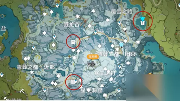 首先传送到龙脊雪山-寒天之钉右边的传送锚点,如下图所示。