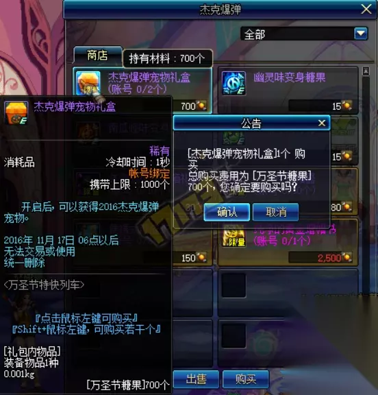 大家好,我是233乐园网小编,近期DNF体验服更新了万圣节的活动,玩家可以通过副本获得的万圣节糖果来兑换专属的万圣节宠物那么万圣节宠物属性到底如何呢?到底值不值得换,就让小编来为大家揭秘吧。 首先是兑换需要的的材料 万圣节糖果700个