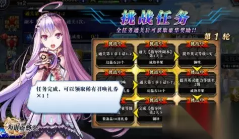1.通关主线1-1-1-2 2.通关活动副本指南所1 3.提升角色人物等级 4.进行任意召唤一回 5.通关主线1-1-1-7 6.提升角色任意技能等级 7.提升任意角色职业 8.通关活动副本指南所2 9.通关主线1-1-1-4 第二轮: 1.商店购买物品1回 2.提升任意角色职业至3 3.提升角色人物等级 4.通关主线1-1-2-6 5.使用佣兵通关任意关卡 6.通关活动副本指南所3 7.任意角色切换职业 8.通关活动副本指南所4 9.任意角色突破5次 第三轮: 1.角色人物等级到20 2.提升任意角色职业至5 3.提升角色技能到5 4.提升角色技能到10 5.通关主线1-2-2-4 6.通关任意活动关卡3次 7.竞技场攻击1次 8.通关主线1-2-17 9.店购买任意物品1回 第四轮: 1.通关活动副本指南所5 2.任意角色进化1回 3.通关主线1-2-3-8 4.协力任意关卡1次 5.通关主线1-3-2-1 6.角色等级提升到30 7.竞技场攻击3次 8.提升角色技能到15 9.提升任意角色职业至6 第五轮: 1.通关主线1-3-3-8 2.角色等级提升到40 3.提升任意角色职业至8 4.协力任意关卡3次 5.通关主线1-4-3-5 6.提升角色技能到20 7.竞技场攻击3次 8.通关任意活动关卡5次 9.通关主线1-4-2-1 第六轮: 1.通关主线1-5-2-5 2.武具合成1次 3.武具强化1次 4.使用佣兵通关1次 5.通关主线1-5-3-10 6.武具进化1次 7.装备强化1次 8.任意角色职业升到11 9.任意角色等级升到60 新手们只要完成了“九宫格”挑战的任务,就能对《为谁而炼金》有了非常多的了解,也能很好地度过萌新阶段。