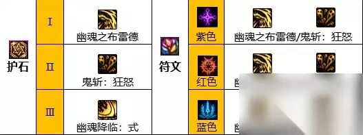 三.鬼泣护石推荐 1、鬼泣通用护石选择一 护石:幽魂之布雷德、鬼斩狂怒、幽魂降临 符文:九保幽魂之布雷德/鬼斩:狂怒