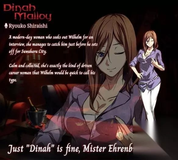 缇娜·玛罗伊 在现代,与即将赶赴诹访原的威尔海姆接触,并向其进行采访的女性。 冷静,且很有胆量,是能将威尔海姆称作[是我喜欢的类型]的职业女性。 以上就是这篇神怒之日前传人物介绍的全部内容了,不知道你们是否会喜欢游戏中的这几个角色呢? 更多内容:神怒之日前传专题神怒之日前传论坛