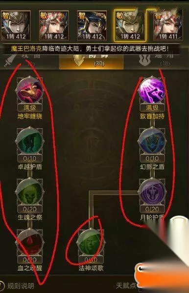 地牢缠绕10 致盲加持20 卓越护盾10 生魂之祭20 血之魂醒20 幻影之盾10 月轮护盾20 法神颂歌10 敏法作为辅助角色,各种减益技能是他吃饭睡觉都不能缺的,在竞技PK中能让对手输出降低不少,让队友能更好的输出。 防御天赋必须全部先点满,辅助角色重要的不在于输出,而是在于生存,给输出角色增加各种BUFF,扩大输出空间。 加下来再点通用天赋 生命之护20 神装之护20 羽之祝福10 神装减免10 这4个要先加满,对辅助角色提升也不小,提高生存能力。