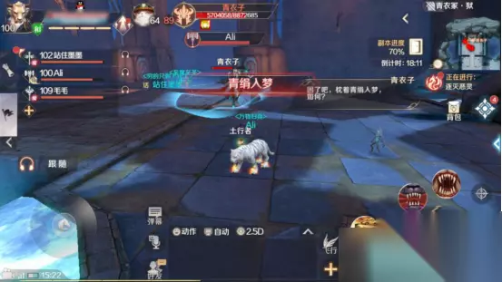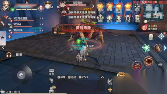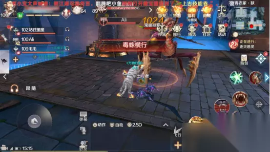 然后,我们会遇到第一个BOSS“鬼面狼蛛”。在打这个BOSS时,妖兽一定要冲上前去持续使用技能吸引鬼面狼蛛,为队友创造良好的输出环境,即在鬼面狼蛛的身后持续输出。