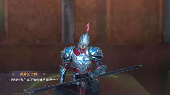 不要忽略门口奄奄一息的士兵,点击交谈士兵会给我们一些提示“小心紫色鬼手和蜘蛛的毒液”,这正是后续我们会遇到的挑战。