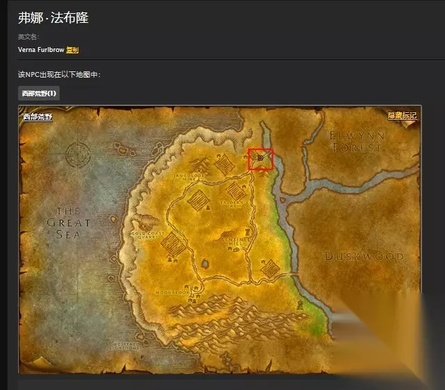 玩家在穿过一座小桥之后就来到了西部荒野,在桥头处可以见到法布隆夫妻,然后在他们那里接取到第一组任务,大概是12级左右,他们还会要你去哨兵岭报道,这里推荐玩家先去哨兵岭报道再去做任务,开启飞行点很关键,以下是法布隆夫妻的地点: