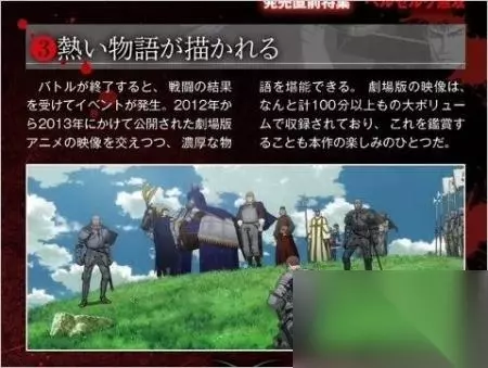 战斗结束后将会发生战斗结果的事件。2012年到2013年公开的剧场版动画的出现,将为游戏添加一层浓厚的电影感。剧场版的动画更是收录了100分钟以上,对此的鉴赏也是本作一大乐趣呢。 能使用的角色根据关卡不同有所改变 故事模式描写格斯的旅途,玩家的基本操作角色也将是格斯。但在一些战斗中,也会有选择伙伴角色玩耍的可能。 蚀模式