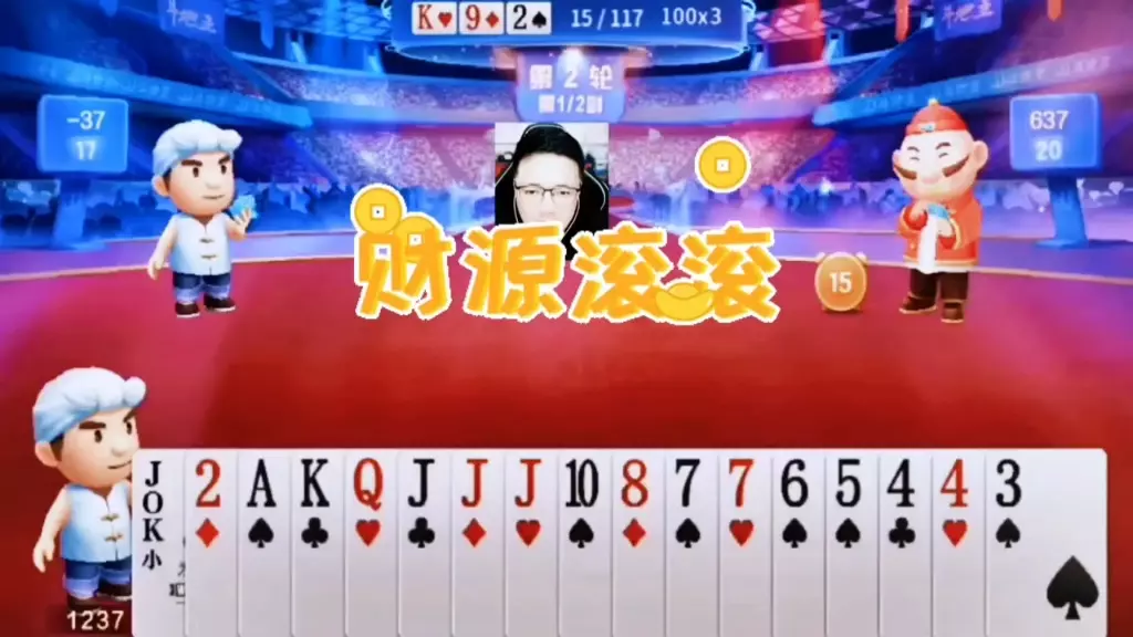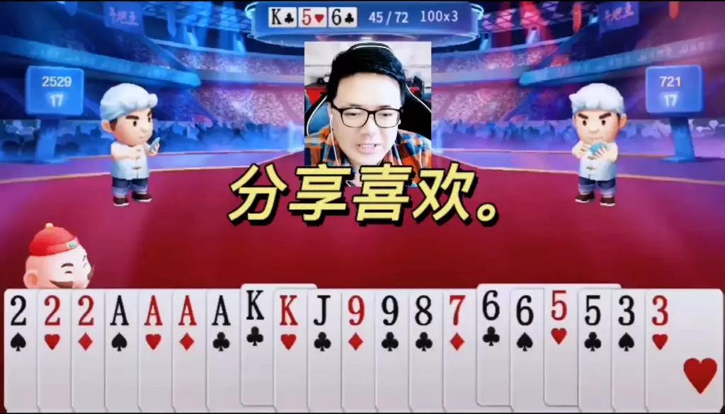 三岁玩牌破釜沉舟四个3的大胆一炸后期残局细腻的行牌为自己争取到了胜利!