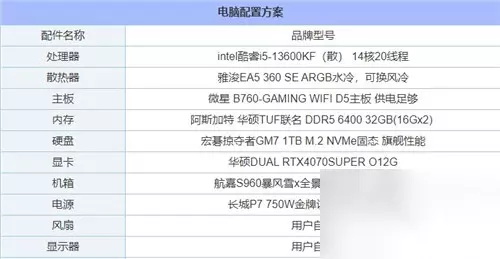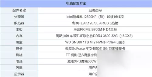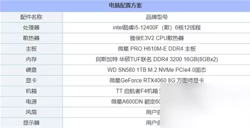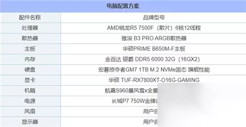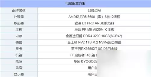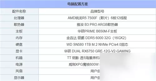 二、《黑神话:悟空》1K分辨率高画质推荐配置: 电脑配置1:1K分辨率高画质
