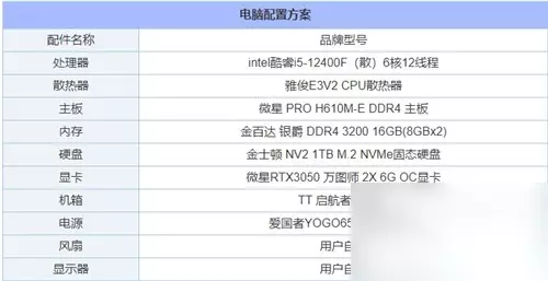 三、《黑神话:悟空》2K分辨率高画质推荐配置: 电脑配置1: