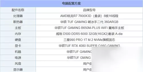 四、《黑神话:悟空》4K分辨率超高画质推荐配置: 电脑配置1: