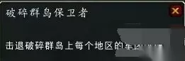 第五步 第五,破碎群岛保卫者。7.2开启之后,燃烧军团当然也不会在没啥动作了,他们也主动进攻了之前还算平静的破碎群岛。在破碎群岛除了达拉然的所有地图,都会出现入侵的恶魔。就像7.0前夕一样,一共有16种入侵的任务,需要玩家全部去完成。每个任务持续1~3个小时,时长不同。怪物不同。全部完成,给保卫者的成就。