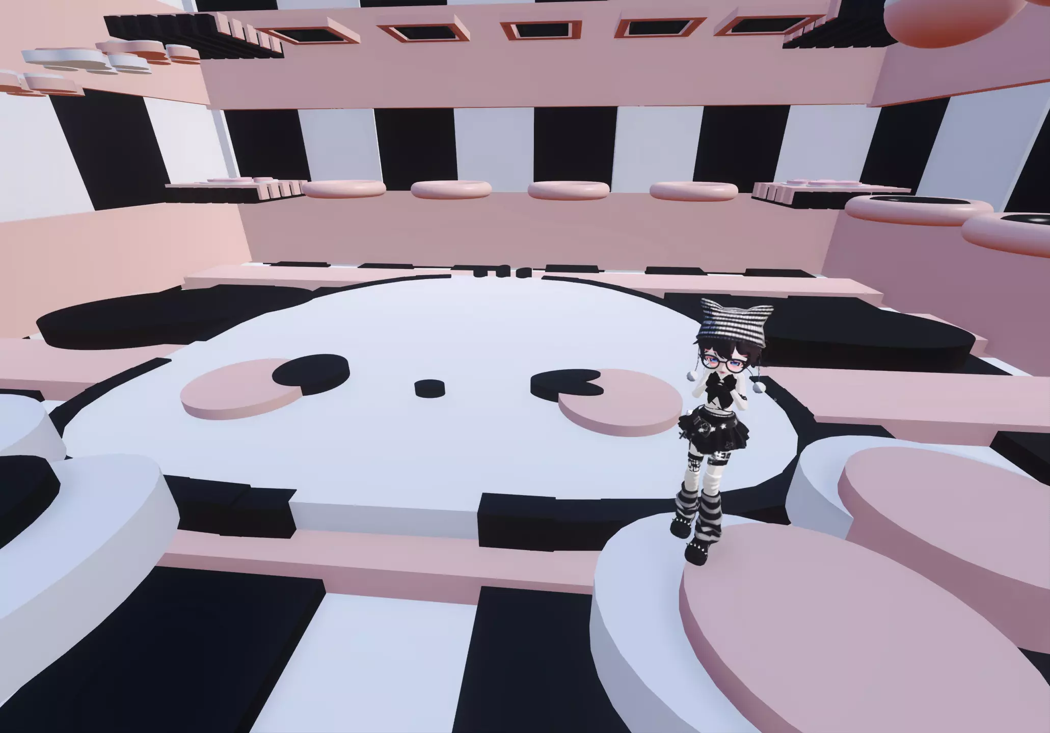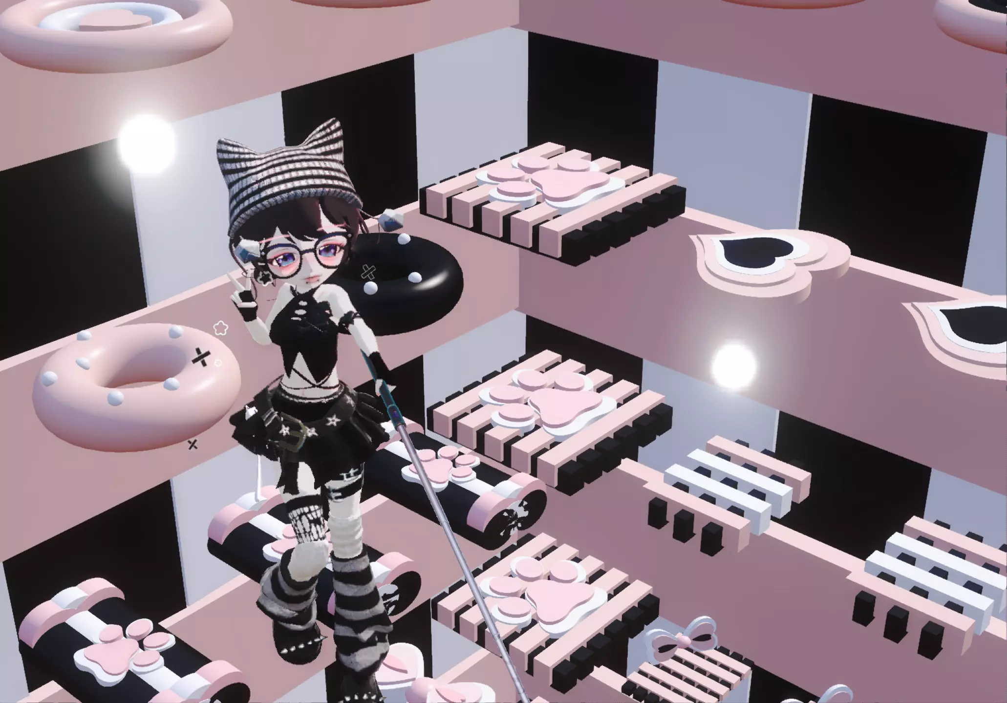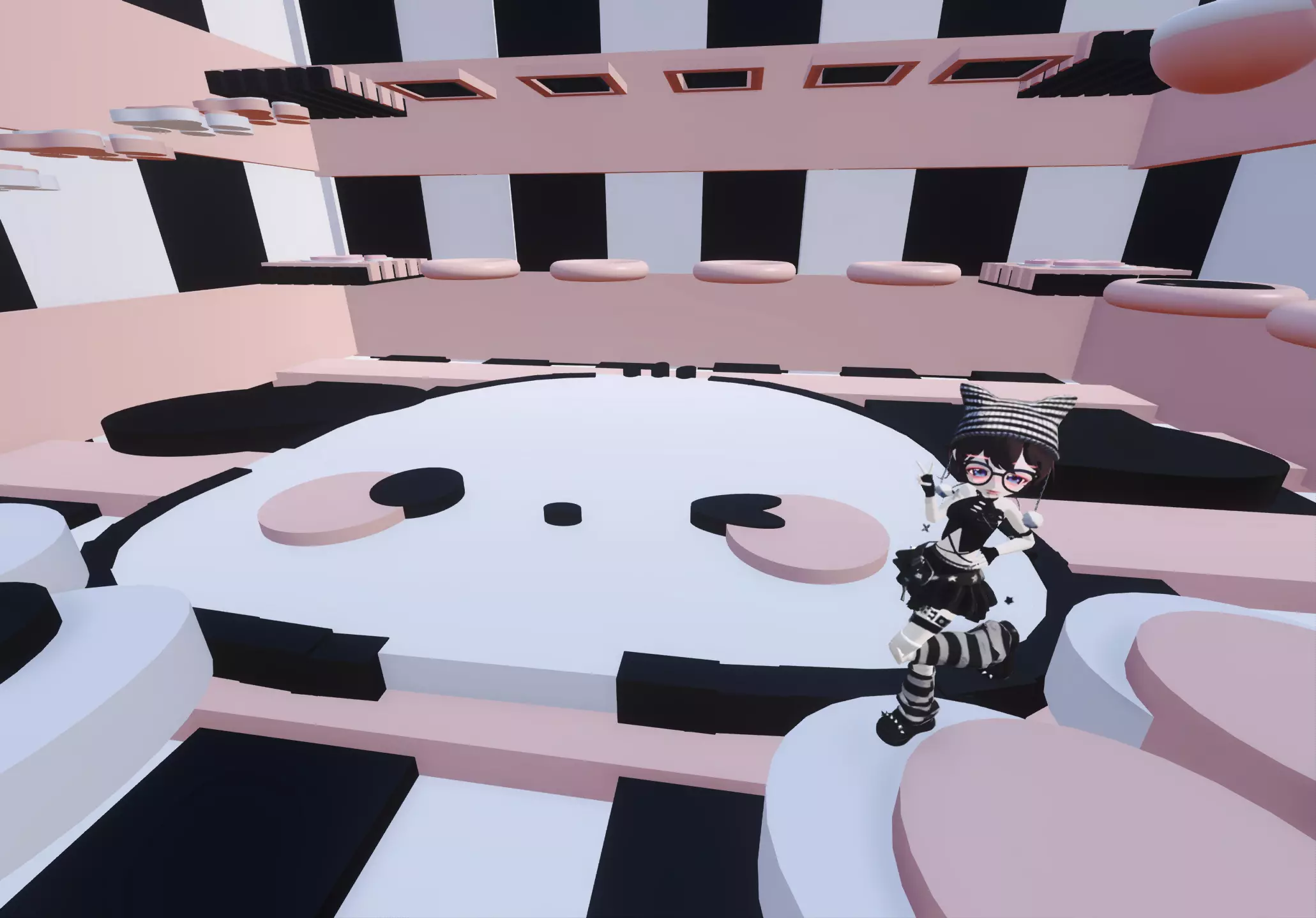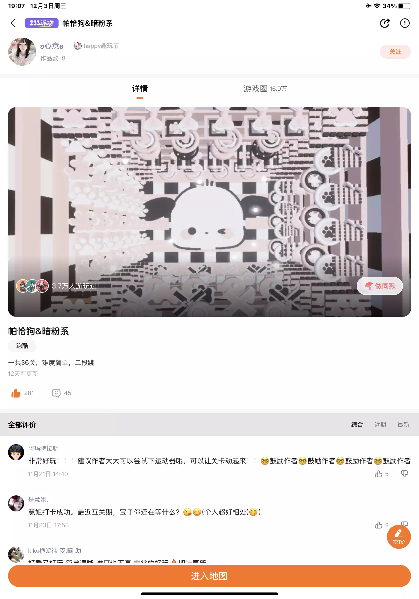 超级可爱的地图呢!去这位老师的作品看了一圈发现很都很高质呢!所以就来推介啦!(•̀ω•́) 整体呢是以黑白粉为主色调,然后以一些小猫爪和蝴蝶结🎀作为装饰,整体跑酷很简单跑酷小白可以试试噢!而且图案也做得十分的精致!٩(˃̶͈̀௰˂̶͈́)و 超推介大家去玩的,终点站有排行榜哟!由于我的网有些卡所有不知道自己多少名呢!地图名在最后一张哦,请宝宝们点点赞支持一下我哦!谢谢大家≧∇≦