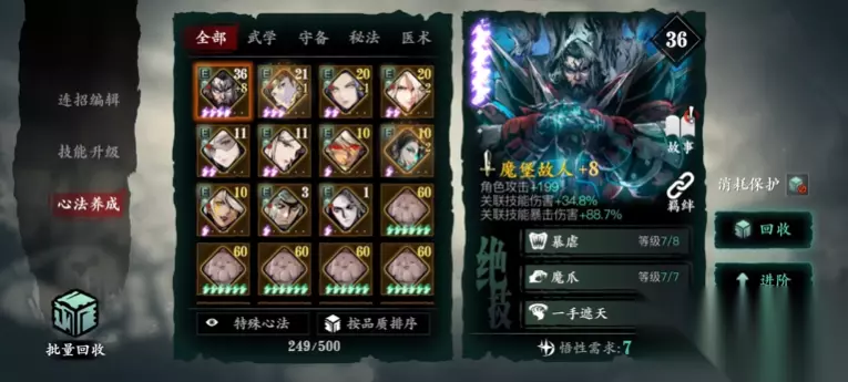 心法套走的是面板强化路线,通过高属性心法堆叠基础数值,对装备要求相对宽松。魔堡三件套是必备组件,搭配堕落神医、永铭之志等紫色心法,注意将老板娘心法放在技能链前置位确保触发护盾。这套玩法虽然输出稳定,但需要较深的心法养成度,建议中期资源充足时转型。杀意流由于绝影技能消耗杀意不连贯,实战效果较弱,通常不作为主流选择。
