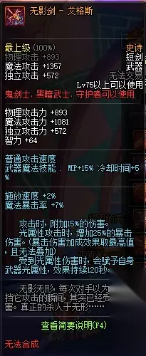 分析目前版本中红眼最强的十把神兵,每一把都可以伤害逆天,得出最新的版本中DNF红眼最强的武器到底是哪个? NO.10 无影剑——艾格斯 老玩家都知道这把短剑在之前的版本有多么受人们的喜欢,没有剑身,只有剑柄,真正的无影剑,强大的属性,让人爱不释手,只是出了新版本后,无影剑渐渐的没落了,但它还是一把不错的神兵。