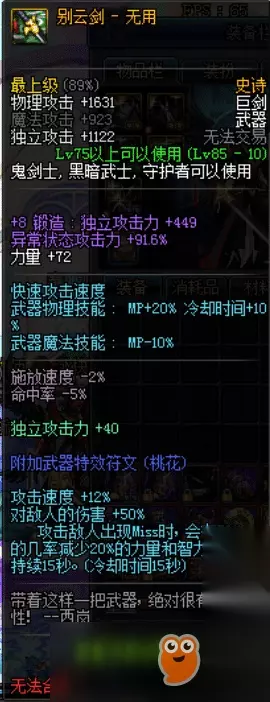 NO.5 别云剑——无用 86版本时,这是当时最热门的一把毕业武器,但是随着90级版本的到来,它只能屈居与第。