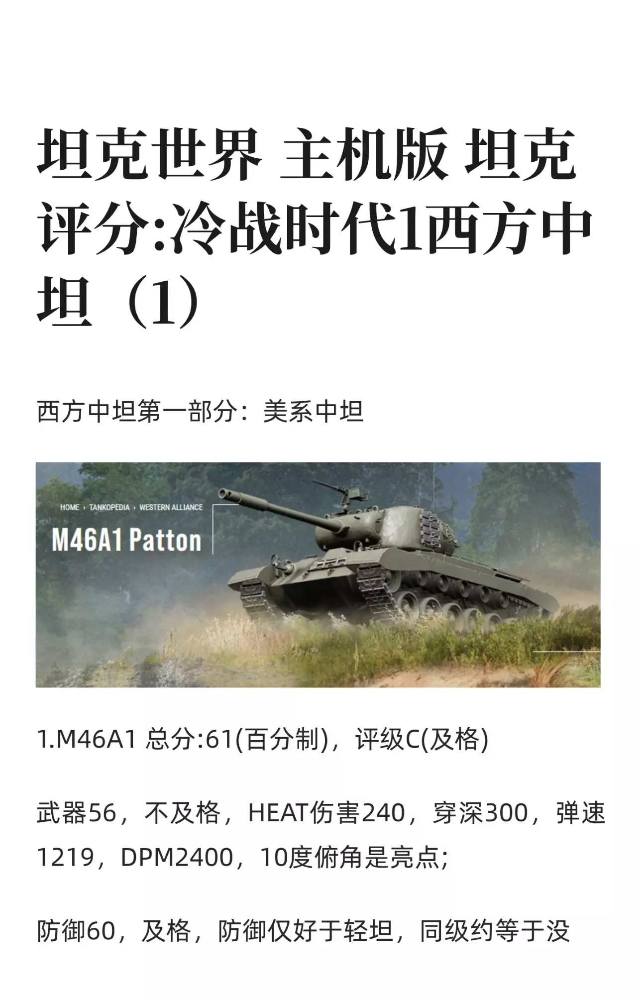 坦克世界 坦克评分:冷战时代1西方中坦(1)