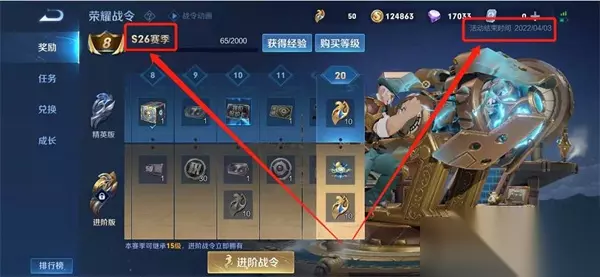 每次的赛季结束时间都会在战令活动结束之后,想必S26赛季具体结束时间就在2022年4月3日前后;