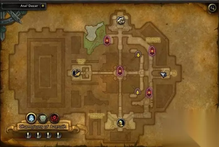 在非战斗状态下,点击方尖碑会被传送至恩佐斯之境,并获得“入侵尼奥罗萨”BUFF(也就是换了位面)。首次激活方尖碑还会在刷新一个相关的副官,在这个位面下的所有玩家都可以攻击这只副官,当副官被击杀后,尸体处会出现通往现实的传送门,点击传送门将会离开恩佐斯之境,同时被激活的方尖碑也会被破坏变成传送门。 三、 副官 四个方尖碑分别对应着不同的副官,每只副官的能力都不同,击败后也会获得部队进度。 通过激活方尖碑出现的副官还会召唤一些小怪,如果该副官是在最后一个BOSS时出现则不会召唤小怪。 注意:如果是在最后一个BOSS的情况下出现的副官,那么在本次作战失败后,副官即使被消灭了还是会继续刷新。 虚空编织者马西尔 l 瘟疫:随机对一名玩家造成自然伤害(10层的情况下约10W伤害),造成一个8秒减速70%的疾病效果。 l 怀疑:随机对一名玩家造成暗影伤害(10层的情况下约10W伤害),造成一个8秒施法速度降低70%的诅咒效果。 l 恩佐斯军团:召唤5只会自爆的毒虫。毒虫会施放一个4秒读条的自爆技能,在10层的情况下,对15码内的玩家造成10W点伤害,并且会留下一个6秒的效果,每秒造成2W伤害。 大部分时间都在交替施放“怀疑”和“瘟疫”两个技能。这是最容易击杀的副官,也是最适合直接在尾王处才召唤的副官。