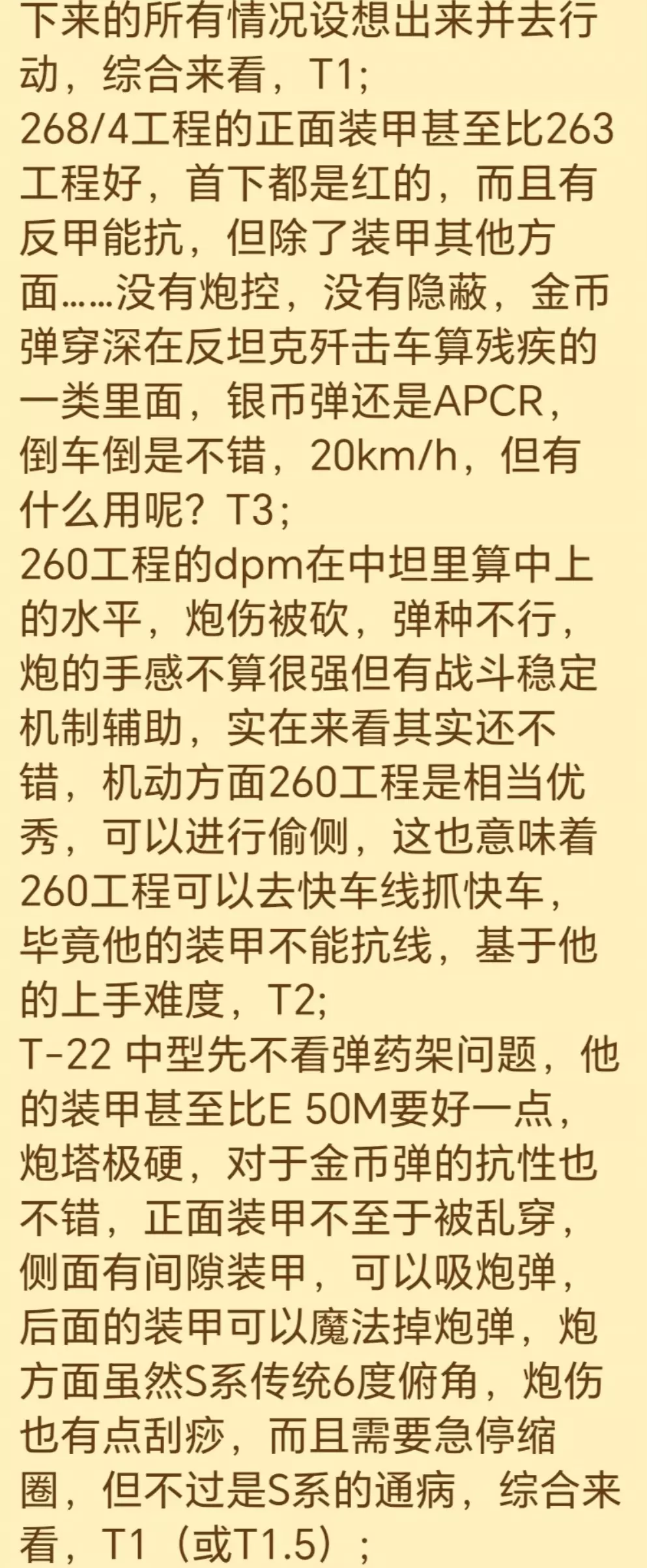 #坦克世界闪击战 说明: 1.个人主观加客观事实,无权威,勿喷,感谢; 2.在我这里,车的强度分类为T1,T1.5,T2,T3,T4(没有绝对的T0),表示为:超模车,强势车,能玩车,残疾车以及下水道; 3.本次排名是针对现版本(11.10版本)车的整体强度,以后改了再; 4.这是手游“坦克世界闪击战”,和端游无任何关联,请自行判断。