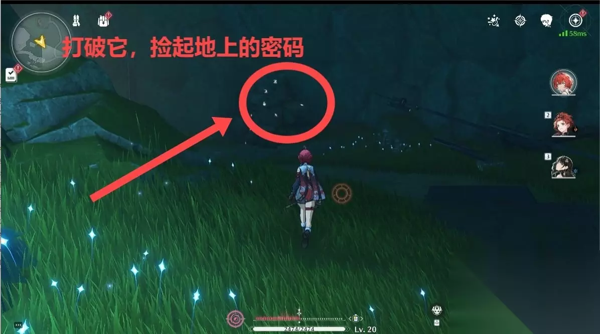 往里面一直走会遇到一个石块,打破得到密码2457。