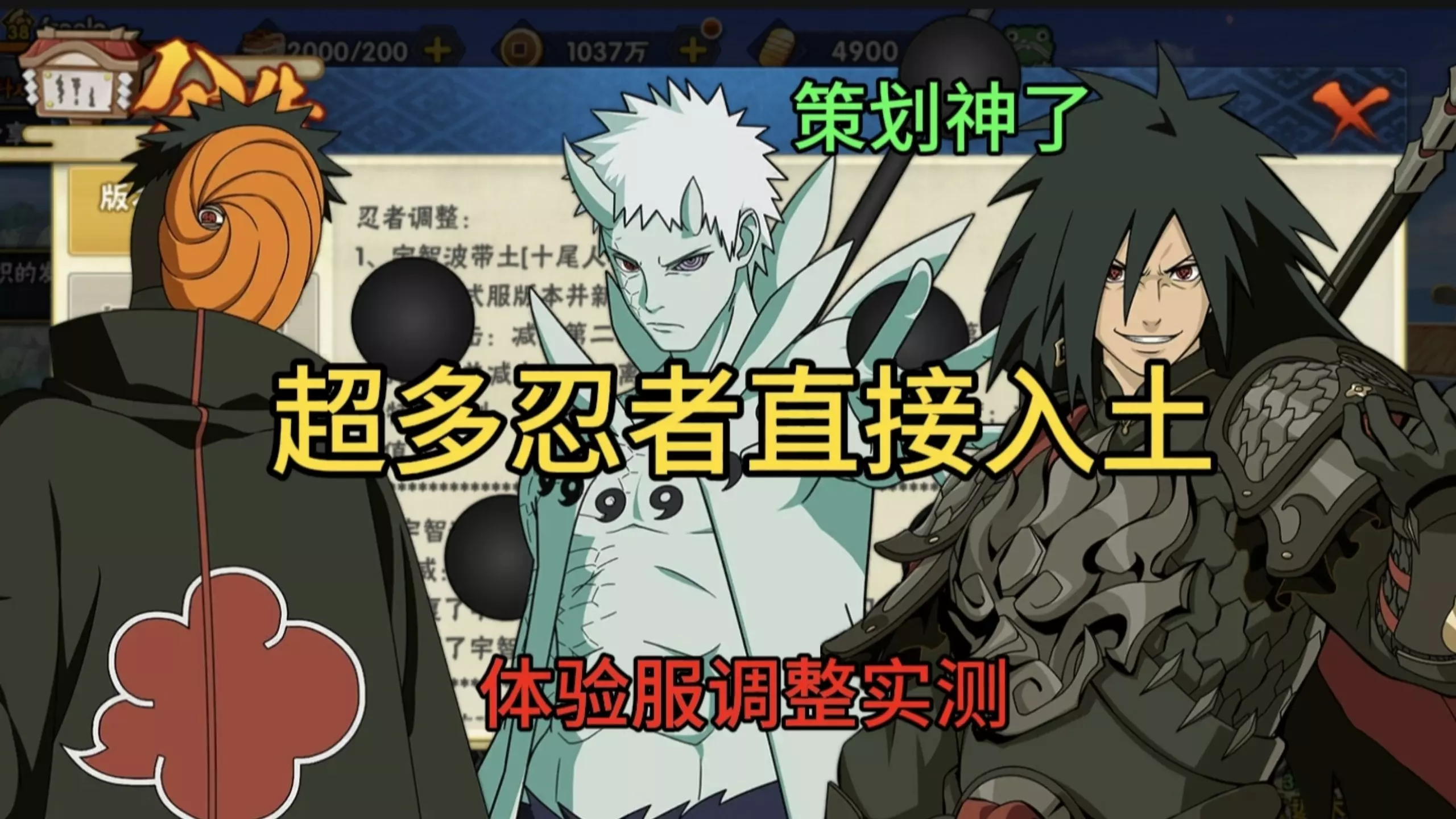 火影忍者手游体验服迎来最新更新,长十郎骨拔失去零帧脱手效果,五影斑虚化不再吸附,十尾带土二A位移被削弱,宇智波斑相关忍者均有调整。