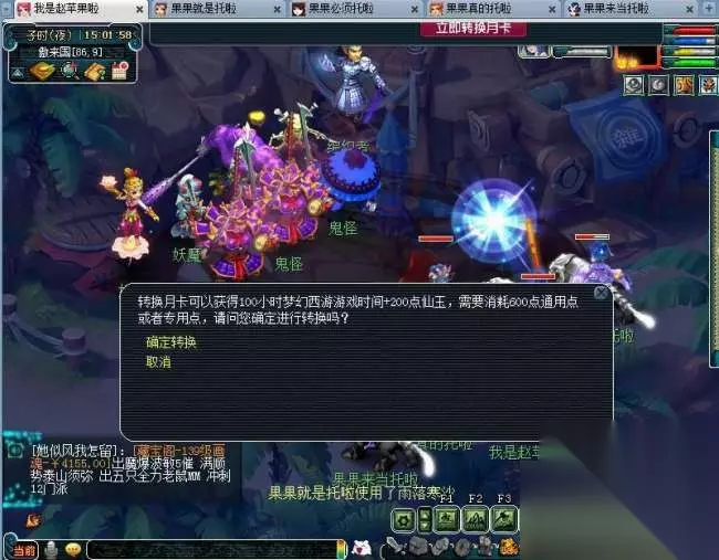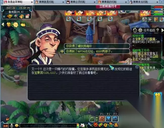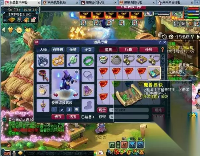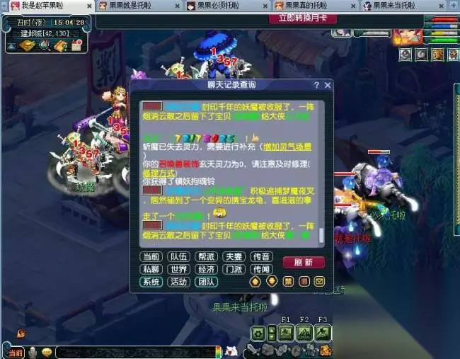 这里有个误区大家一定要注意,如果当前回合战斗没结束,你点了确认转换,等战斗结束,你还得重新跑到道人那里领取任务。 现在彦祖们知道戴没灵气法宝的作用了吧,目的是提前了解战斗有无结束,所以是选择佩戴没灵气的法宝和召唤兽装饰大家任选其一,只要能看到系统栏提示就OK,我这里两个都戴是为了给彦祖们演示操作用。