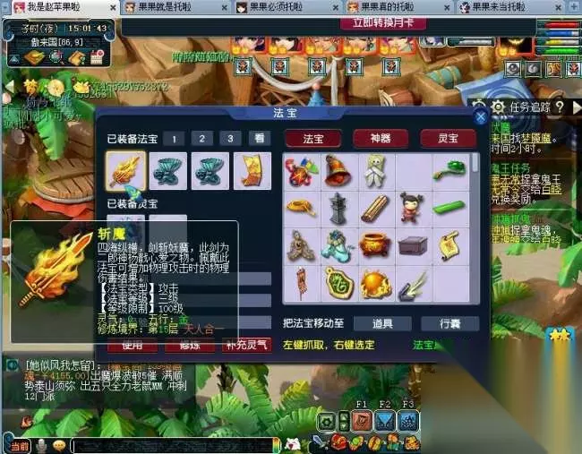 继续打开法宝栏,选择一个没灵气的法宝戴上,后面我会讲原因。