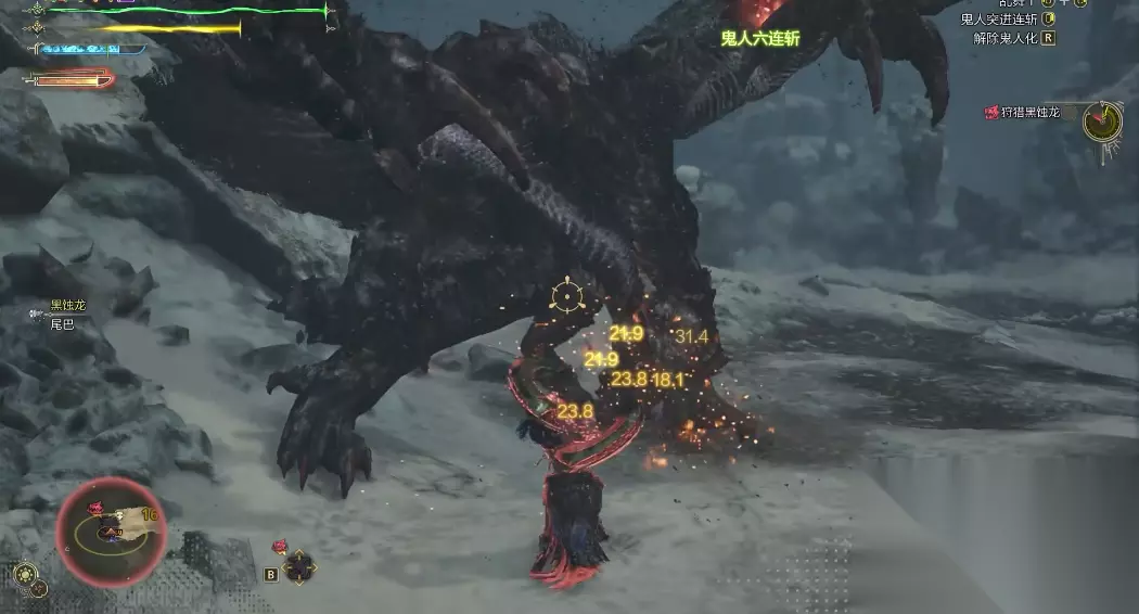 "蓄力冲刺"是极具威胁的招式,黑蚀龙会先弓身蓄力随后发动大范围突刺,建议通过连续侧向闪避或利用地形障碍进行规避。进入狂龙化状态后,怪物会新增触角攻击并强化吐息范围及移动速度,此时应优先破坏头部触角来解除该状态。太刀使用者可通过赤刃1接气刃斩快速升刃,在红刃状态下用气刃大回旋斩重点攻击头部。